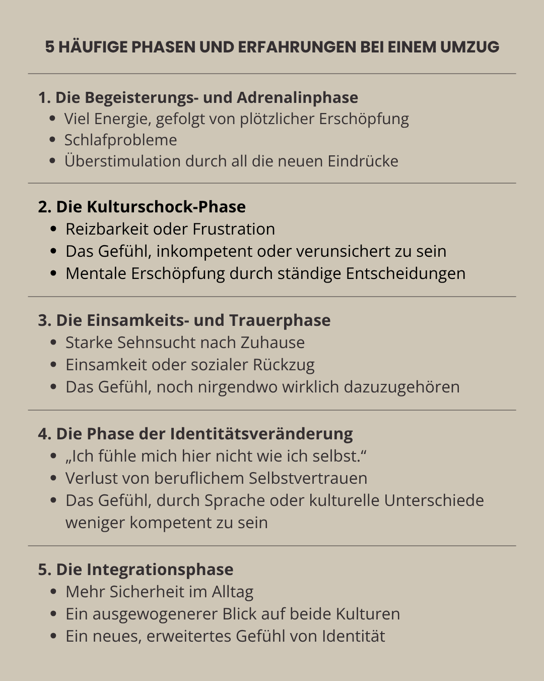 Egal ob du zurück in deine Heimat ziehst oder in ein neues Land gehst. Diese fünf Phasen erleben viele Menschen: