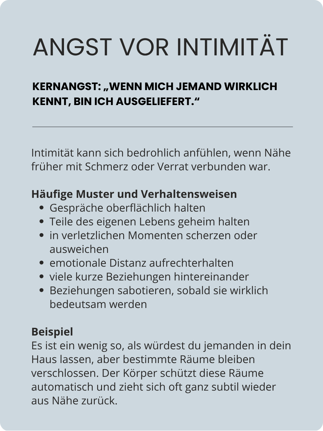 • Manchmal zeigt der Körper frühere Erinnerungen, Geschichten oder Erfahrungen, die alte Angstmuster geprägt oder verstärkt haben. Wenn das auftaucht, arbeiten wir damit direkt über den Körper.